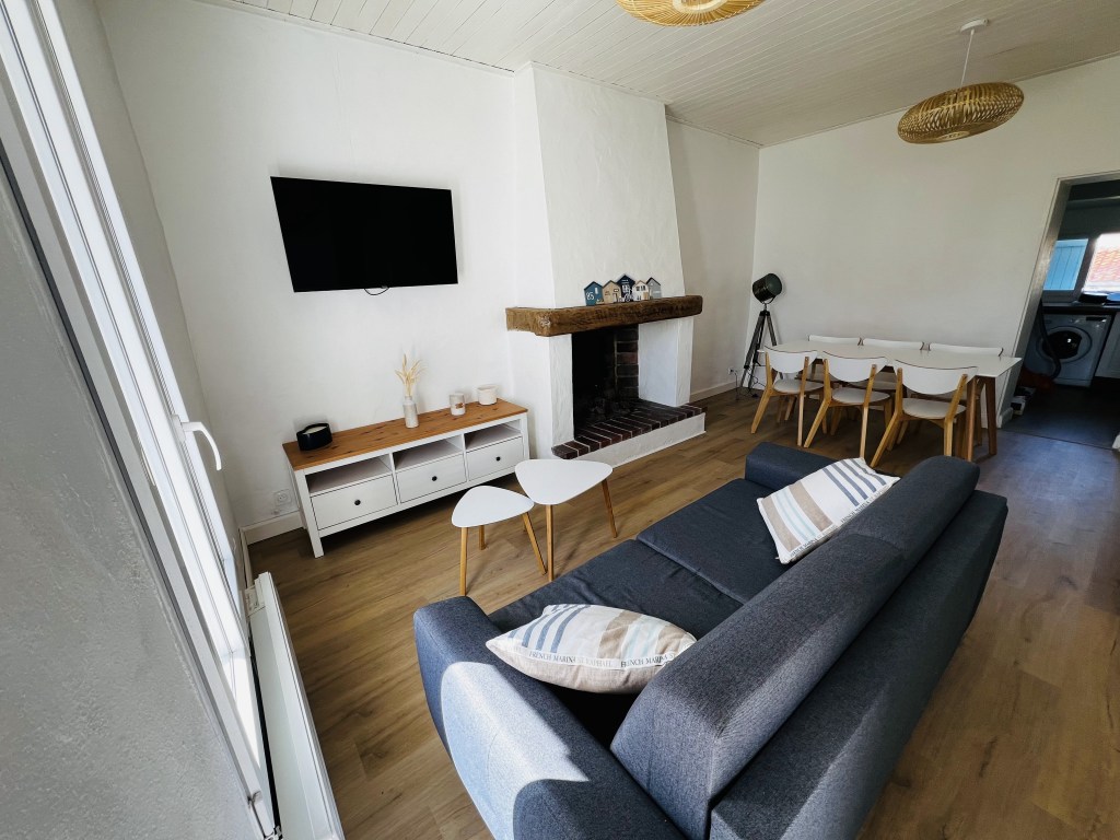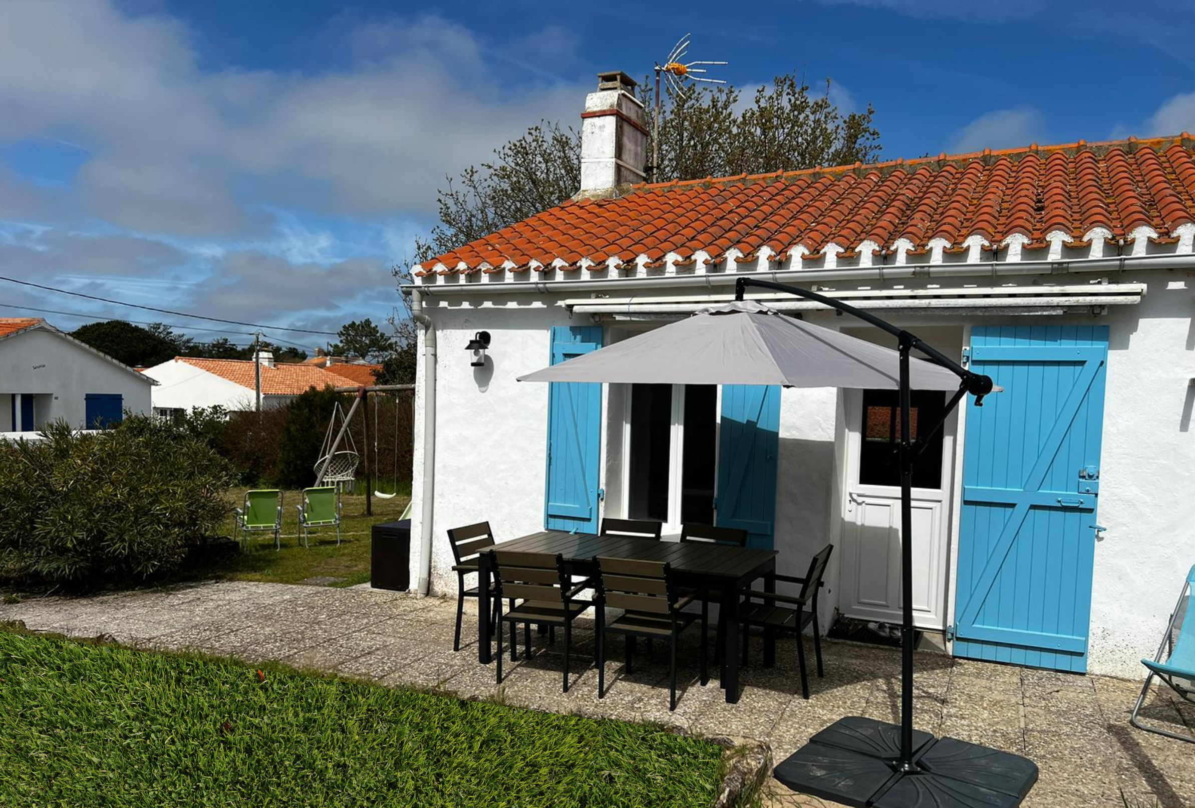 Découvrez notre petite maison typique de l’île de Noirmoutier, avec ses volets bleus 🌊, nichée sur un terrain de 500 m² entièrement clos 🌿. Un véritable cocon pour des vacances en famille ou entre amis !